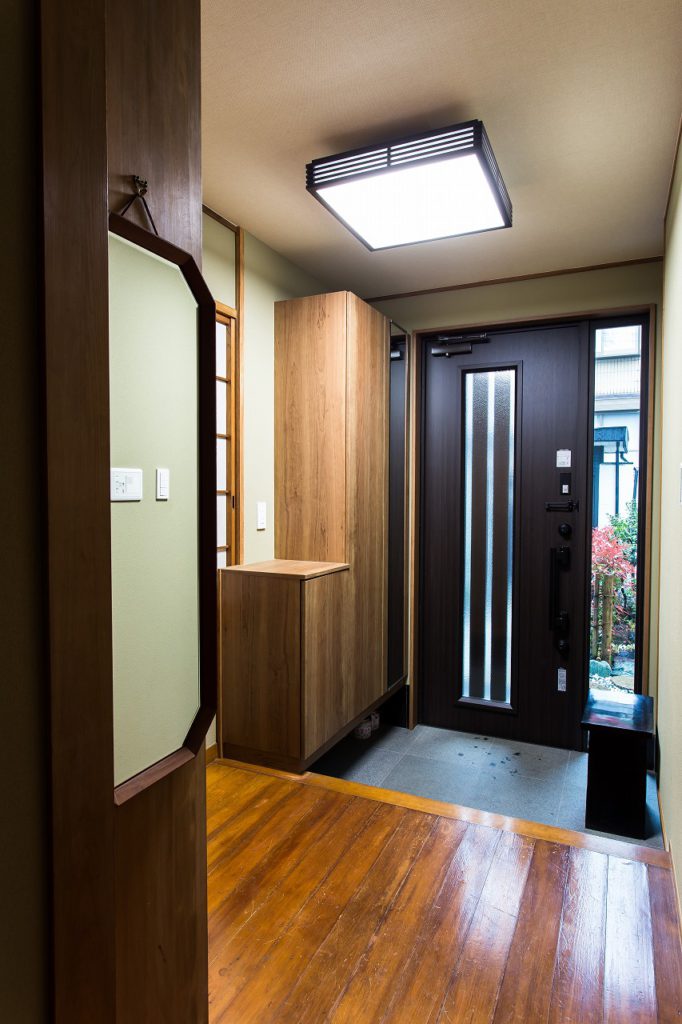 玄関ドアやその周りのタイルを和風の玄関に合うよう交換しました。