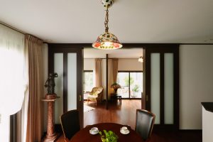今まで住んでいたお部屋と同じテイストでお持ちの家具もしっかり調和できています。開放でありながら格子や建具を使い、適度な距離感を保てる空間で、心地よく過ごすことができています。