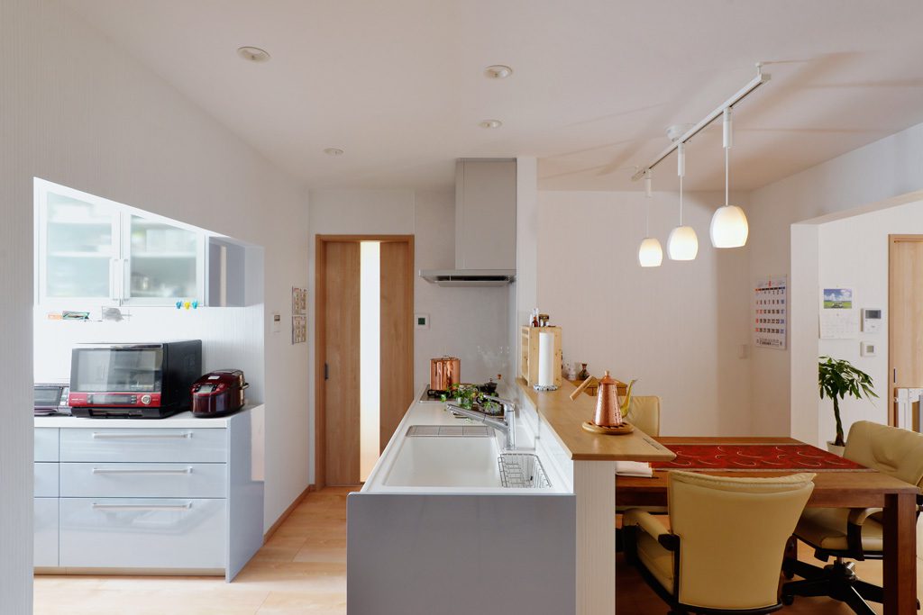 家事もお手伝いされるご主人様も使いやすいようにキッチンを計画しました。