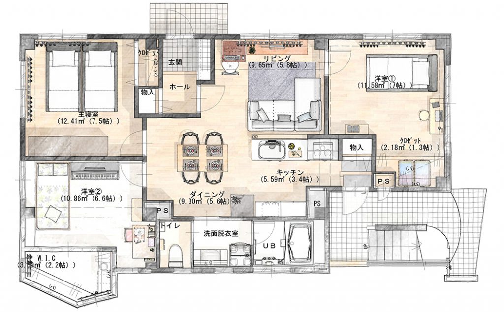 ・個室は3つ(ベッドを使うので和室は無くてよい)