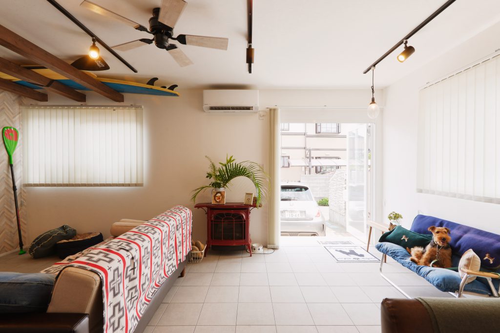 今まで1階が無駄なスペースになっており、2階のLDKで犬たちと手狭にくらしていましたが、1階に人間がゆっくり寛げる空間ができて家での時間が心地よいものになりました。食事もゆっくりとれるようになり、主人が毎日腕を振るってくれています。好きなインテリアにも囲まれて、サーフィンも飾れるところができて!自分達らしいラフで自由な暮らしが実現できそうです。