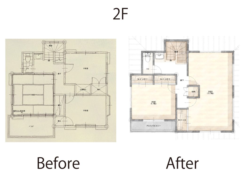 間取りも今のご家族のライフスタイルにあわせて、玄関ホールや廊下などの無駄なスペースを少なくし、DKとリビングを一体化させ広く使いたい。収納スペースを増やしたい。