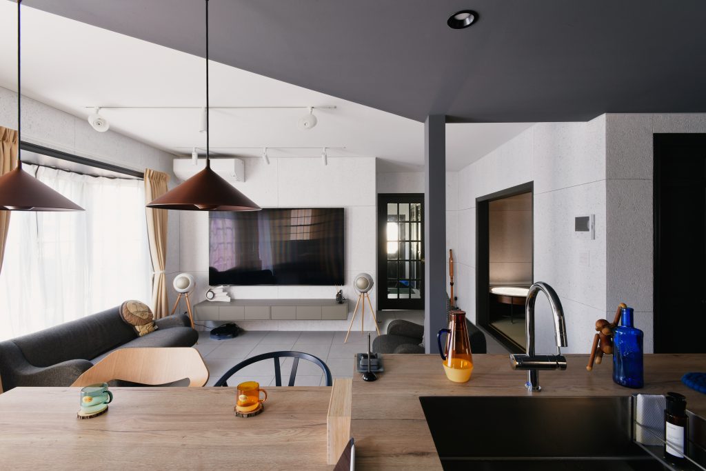 ご両親は2階にお住まいのまま、1階を自分達らしい空間にしたいとのご要望でした。在宅ワークも多い中で、家の中に安らげて、でもちょっとワクワクするようなカフェ空間をご希望されていました。
