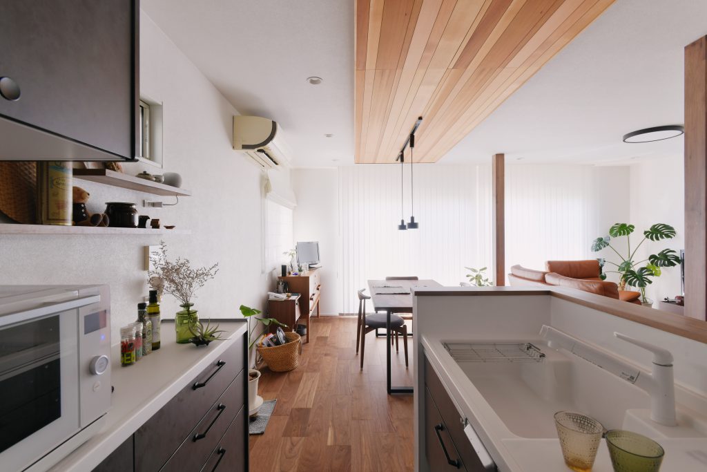 リビング、ダイニング、寝室、廊下、屋根、外壁、造作家具、トイレ、キッチン、洗面、浴室