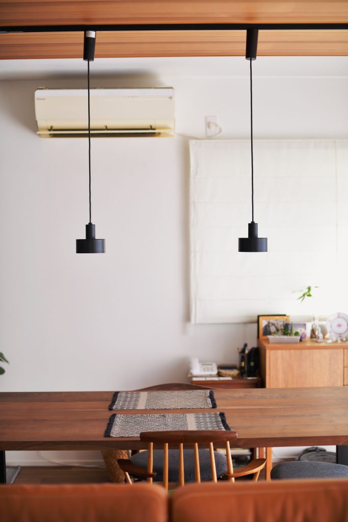明るくて、居心地の良いリビング。ひとつひとつこだわって選んだものに囲まれて、とても素敵な空間になりました。玄関正面のスリットガラスや無垢天板を取り寄せて造ったダイニングテーブルなど、魅せどころ満載です。