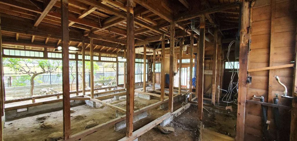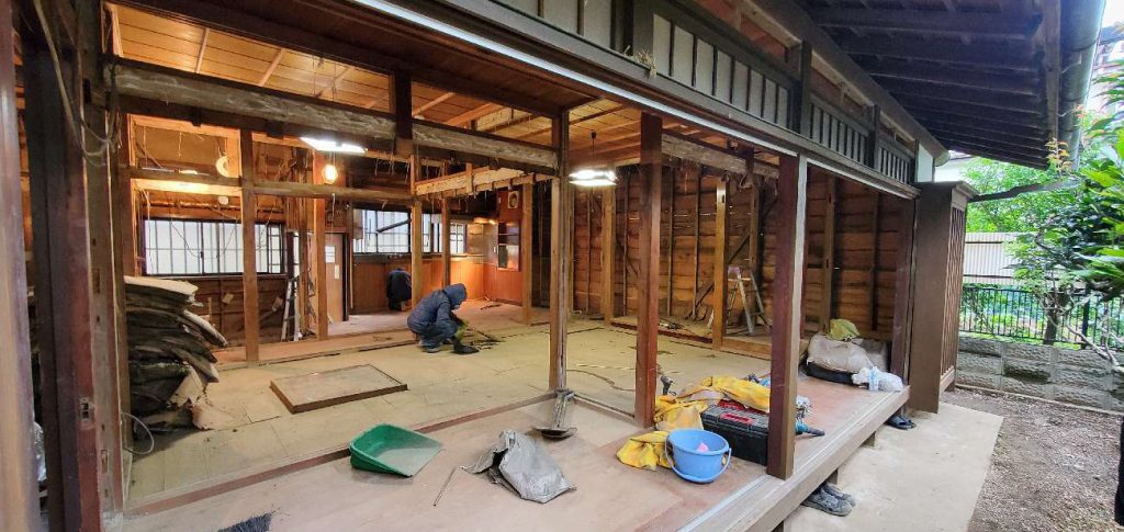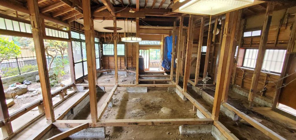 壁も床も全部解体しています。木造の家であれば、柱を抜いても補強をすることで広々とした空間を作ることも可能です。