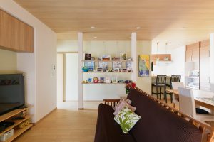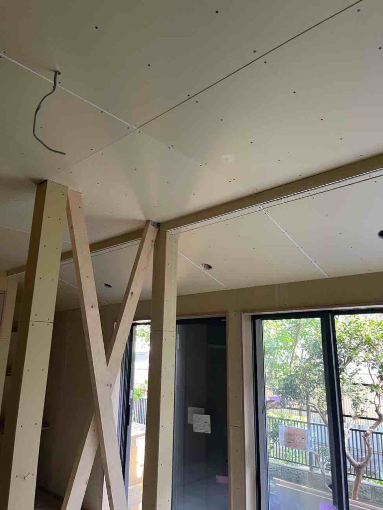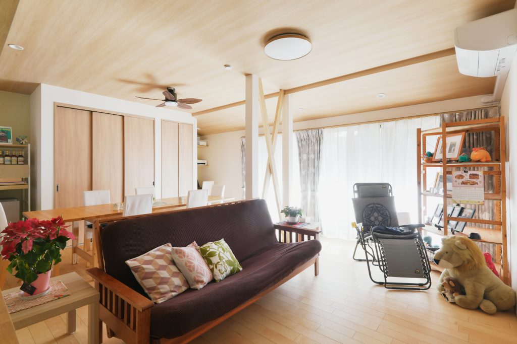 大きな空間を支えるためには柱が必要でした。筋交いを隠すこともできましたが、空間に開放感をだすためにあえて見せることにしました。
