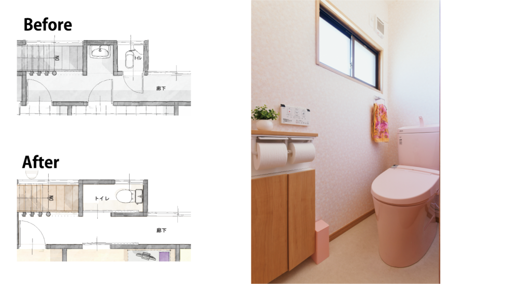 2つの空間を一つにまとめ、広々としたトイレになりました。