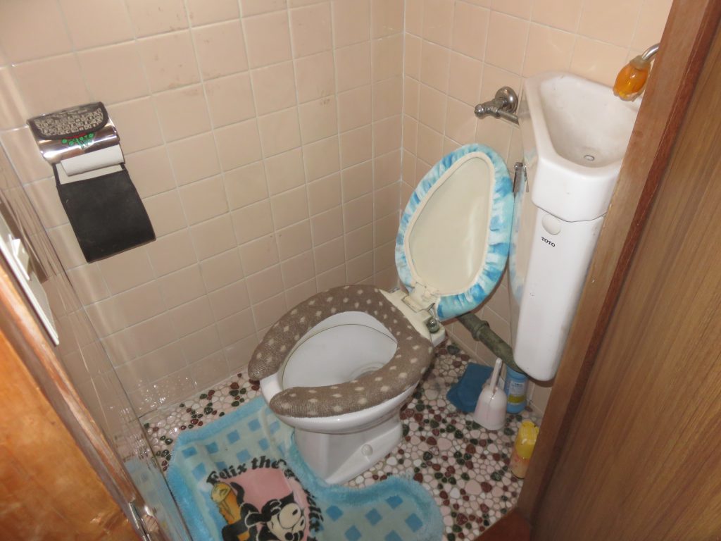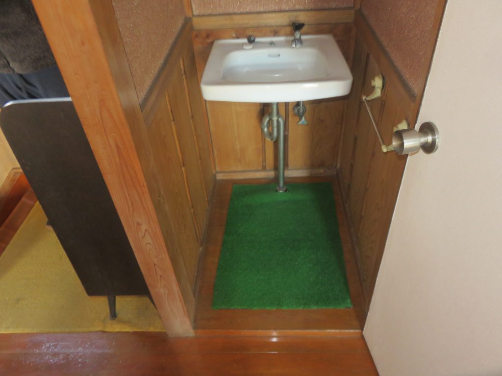 隣り合った洗面とトイレが使い勝手が悪く、トイレも墨付きのタンクで狭い空間でした。