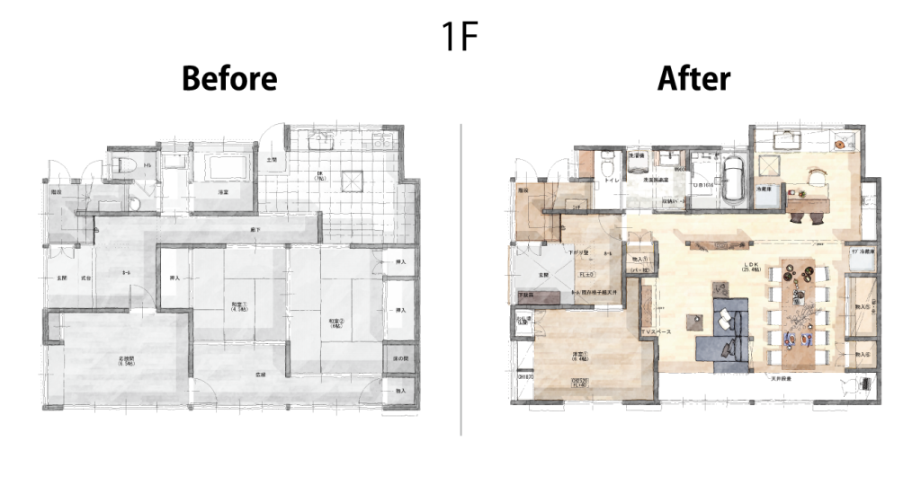 ご夫婦は約35年間、アメリカにお住まいでした。帰国後、奥様のお父様が遺されたお家で生活を始めるにあたり、全面リフォームをご計画されておりました。
