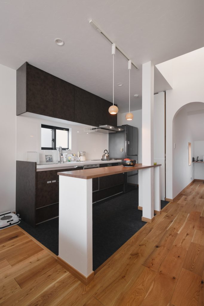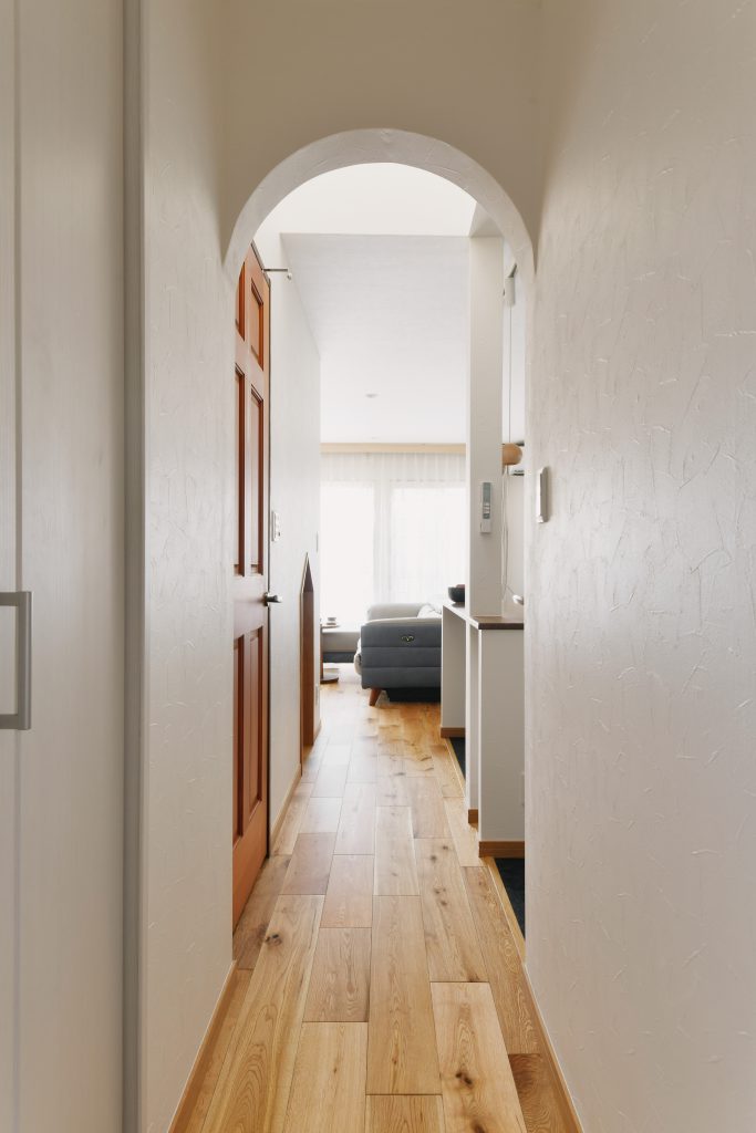 無垢フローリングの柔らかい足触りと温もり、そして日中に差し込む優しい光が心地よいリビングになり、「リビングで1日のほとんどの時間を過ごすようになりました」とお客様にも喜んで頂きました。