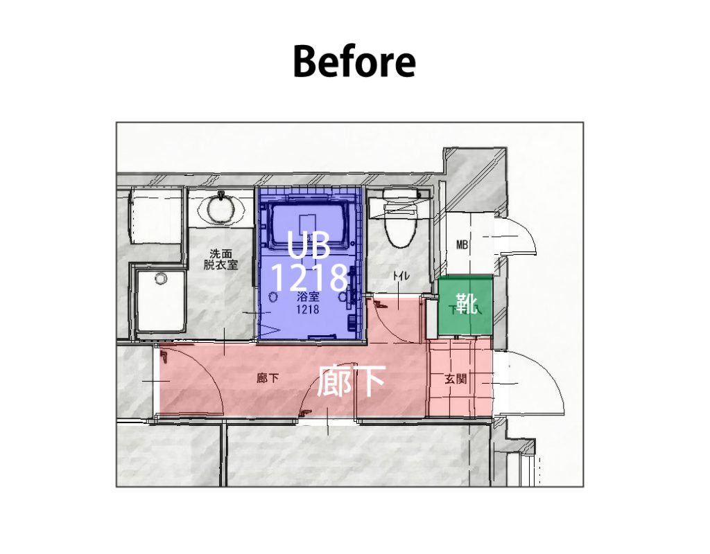 靴の収納力不足や縦長で狭いユニットバスが悩みでした。