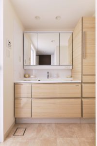 お片付けが上手なK様。築20年とは思えないほど綺麗に暮らされていたこともあり、リビング入り口についていた収納キャビネットはそのまま移設して活かしました。