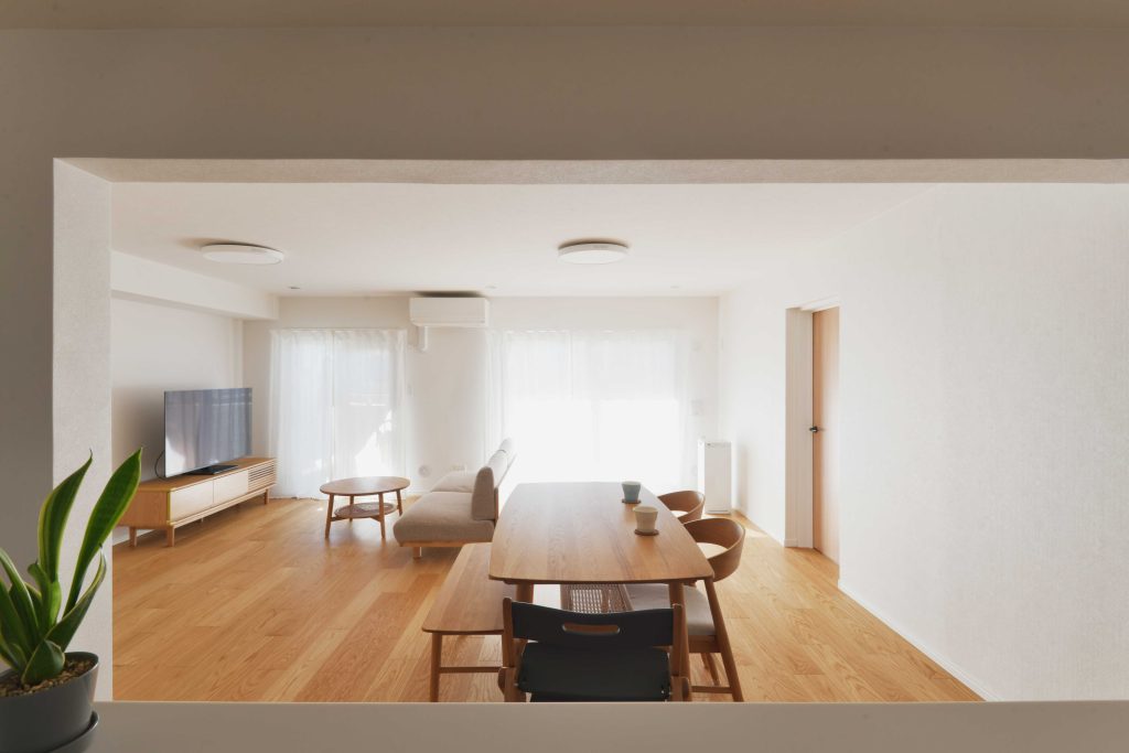 ▽築年数が経過している団地ということもあり、水廻りの配管スペースの制約上簡単にはキッチンを移設することが難しい造りでした。