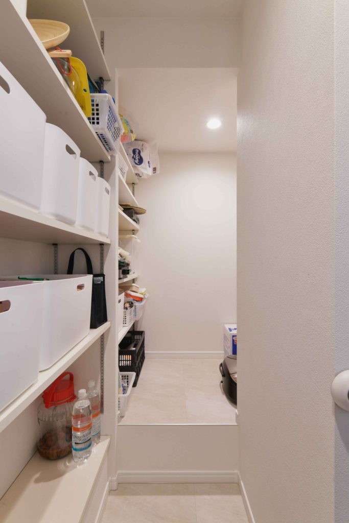 普段行き来が少ないパントリーに配管スペースを作ることで、普段使いする動線はバリアフリーを実現しました。