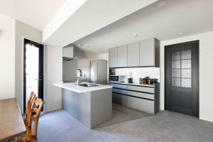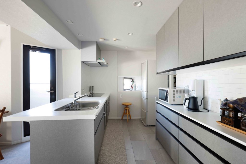 中古マンション購入に伴うリノベーション。梁をうまく使い、対面キッチンを実現しました。