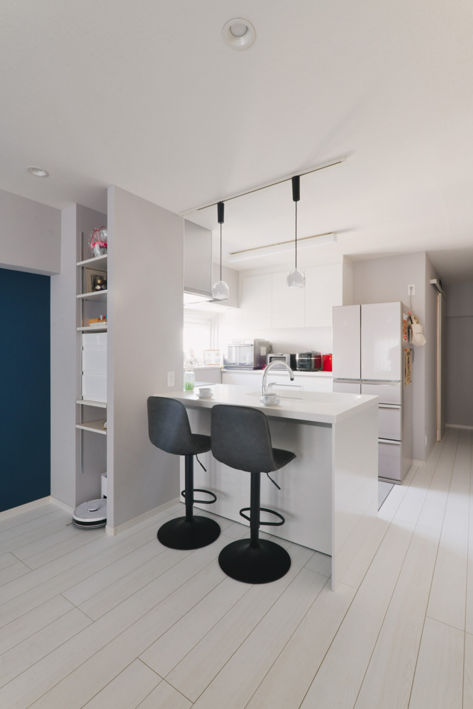 築53年のマンションを27年前に購入し、今回リフォームをお願いしました。担当のMさんに予算を聞かれ、いろいろな案を出してもらいました。古いマンションなので拘っていたキッチンが出来ないかもしれない!と途中アクシデントもありましたが、昔の図面を見たり調べたりして、希望通りのキッチンが出来ました。設計士のKさんには何度も図面を変更してもらったり、アドバイスを頂き大変お世話になりました。収納を増やしたくて何ヵ所か作って頂きとても気に入っています。お二人にはとても寄り添ってもらい、私達の希望を叶えて頂きました。また何かありましたらお願いしたいです。