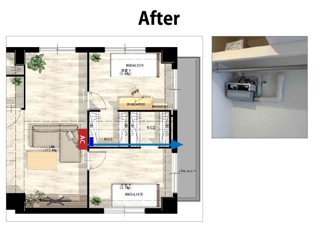 エアコンの裏にあるウォークインクローゼットの中に専用の機械を取り付けています。
