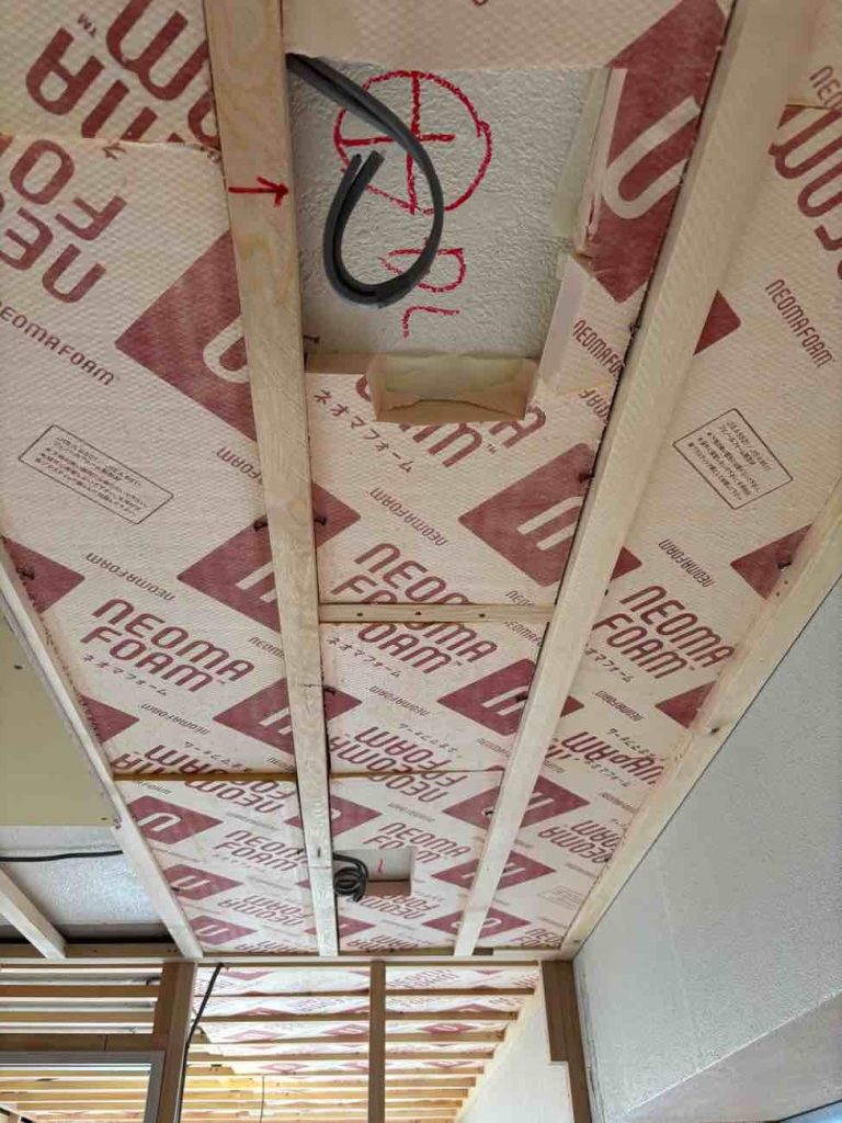外壁と面する外周面と天井に「ネオマフォーム」という断熱材を入れています。