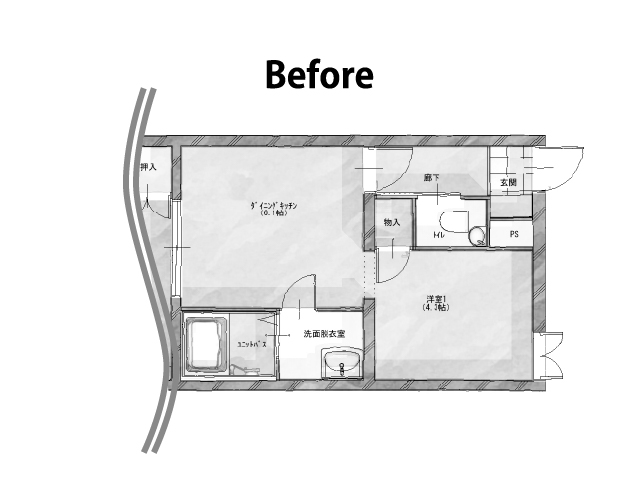 ご家族の在宅介護を終え、お客様の自身の新しい生活をスタートさせるべく、同じマンションの別の住戸へ引っ越すことになったが、引っ越し先にはキッチンがなく、内装の長年の汚れも目立っていたためリフォームが必要だった。