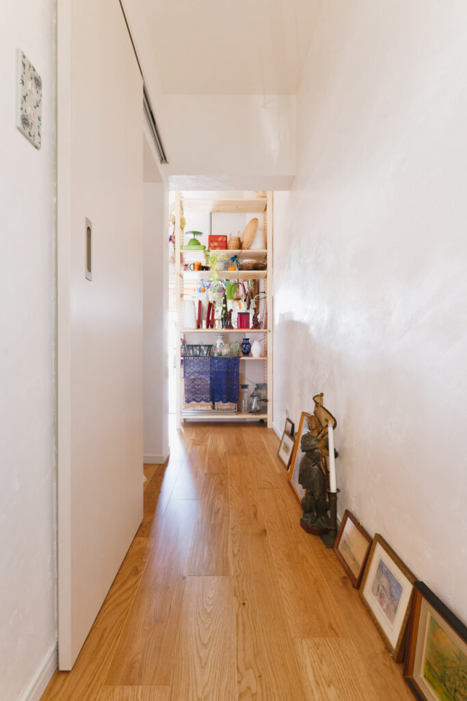 今回のリフォームで壁を取ることで、トイレのドアを閉めた時に通路として通れるように動線改善をしています。