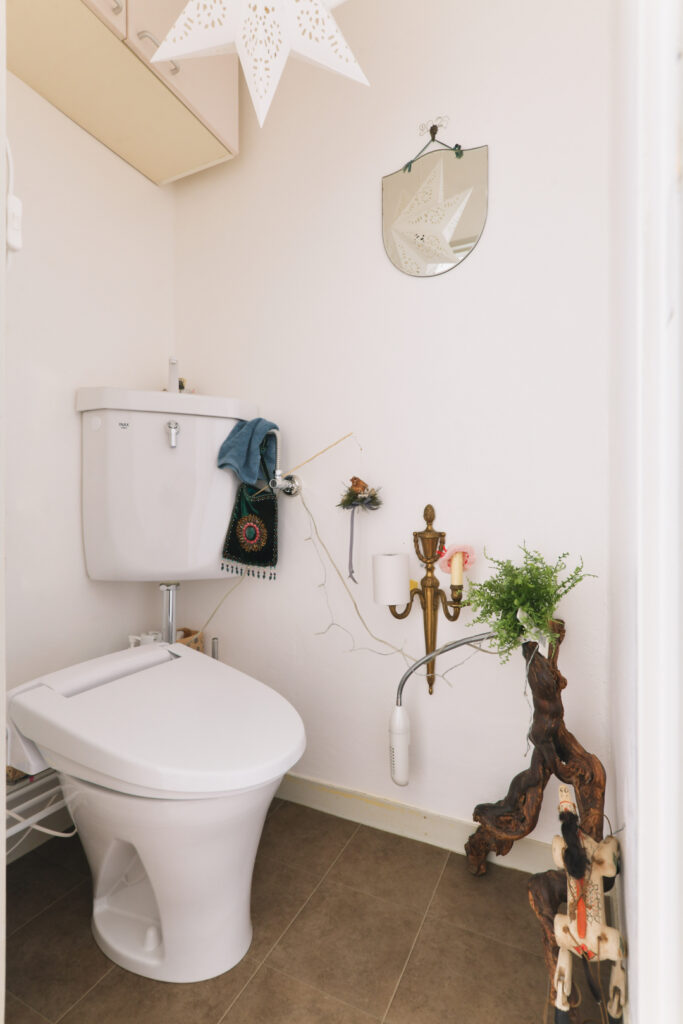 アウトセットの引戸がついたトイレのドアは既存のドアを再利用しています。
