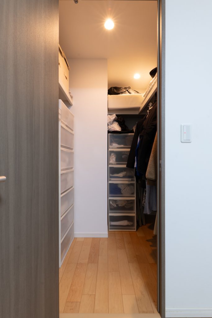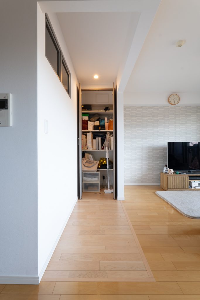 収納を分散させることで、使い勝手の良い収納スペースを各所に用意しています。