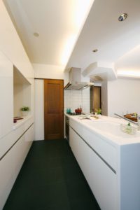 なかでも強い希望のあったウォルナットの床材やクチーナ社のキッチンはグレードの高い商品で、上質感が魅力になっています。