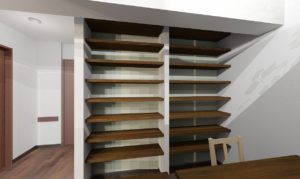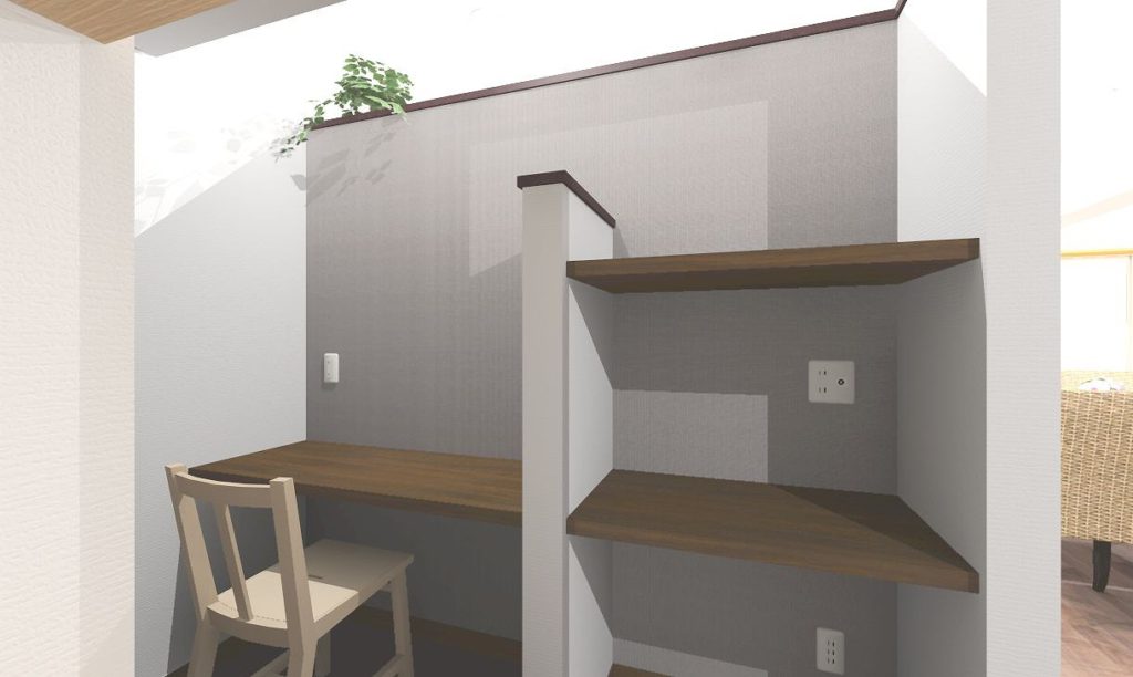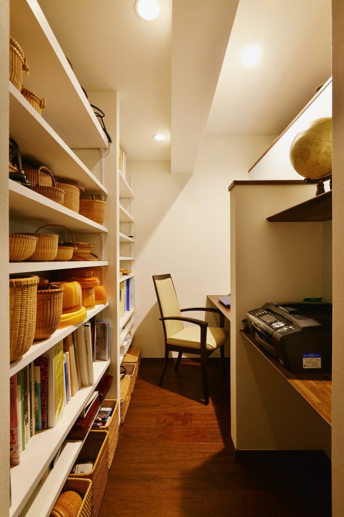 その際、奥様の趣味のナンタケットバスケット作成のための材料を収納する場所や、集中して作業が出来る場所を計画したり、リビングの一角にご主人様の書斎を作ったりと、「くつろぎの空間」「ほどよい距離間」「自分の時間と家族の時間」を意識したプランニングをご提案しました。