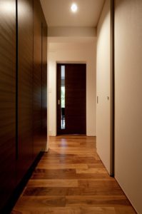無垢の床材がご希望でしたが表面を無垢で仕上げた複層フローリングに変更するなど、素材を吟味することで予算内に納める工夫をしました。さらに廊下に設けた壁面収納の内部に既製品を採用したり、造作の洗面台は職人さんが現場で仕上げるなど、外注ではなく手間をかけることでコストダウンを図りました。