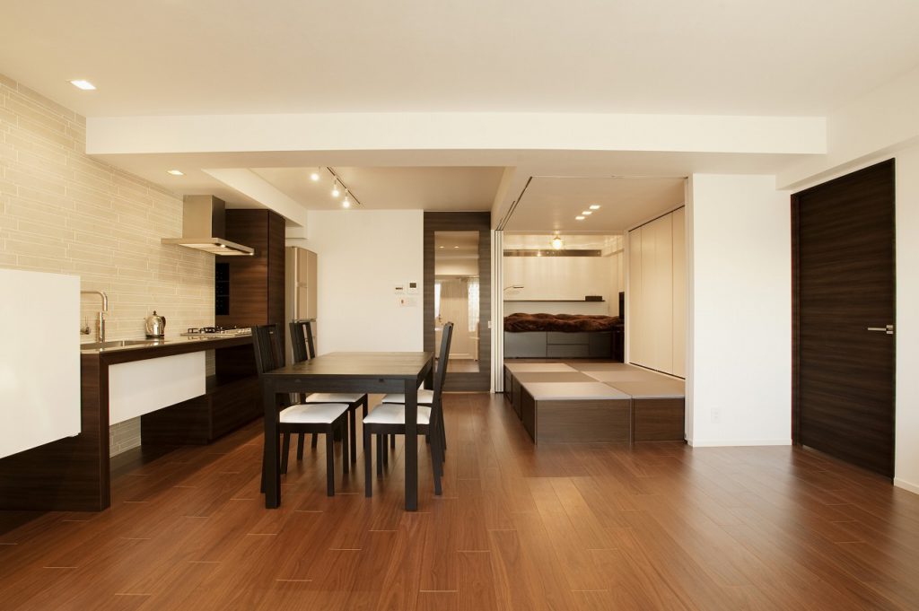 LDKの一面に設けた小上がりは、仕切りを閉じればお母様の個室に早変わりします。