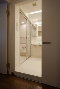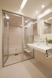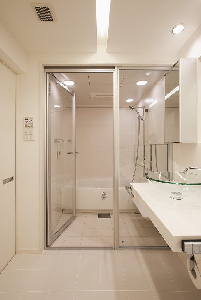 カナダで住んでいたマンションの使い勝手やデザインを取り入れたいというご希望にそってバス、洗面、トイレを1つにする3in1スタイルのバス・サニタリールームを実現しました。
