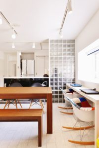 できないと思っていらした対面キッチンをご提案して、間仕切りにガラスブロックを採用。