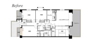 上手く使えていなかった和室をリビングにとりこみ、LDには窓が3面になり、最上階・角部屋というメリットを最大限に生かせるLDに生まれ変わりました。