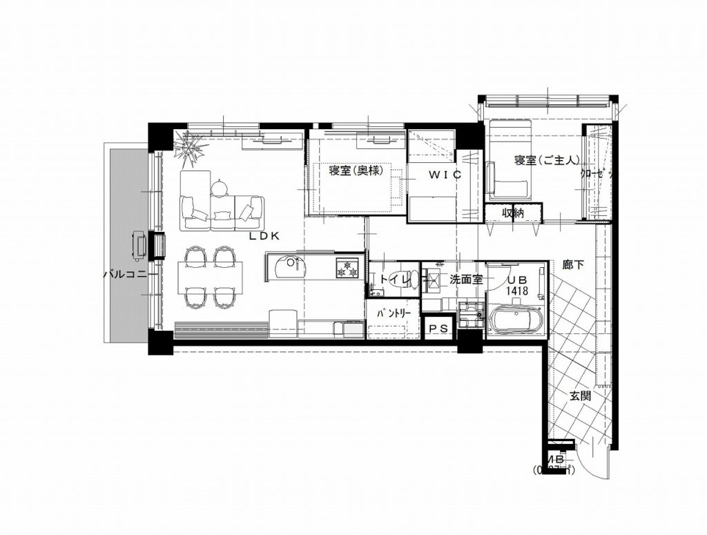 間取りを大きく見直し、まずは、毎日ご夫婦とわんちゃんがゆったりと過ごせること、仕事から帰った瞬間に、”やっぱり家は格別”だと思えること、そんな風に思っていただける空間づくりを目指しました。