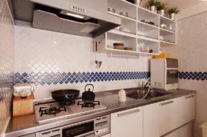 LDKの主役になるよう、キッチン廻りはタイルで仕上げています。