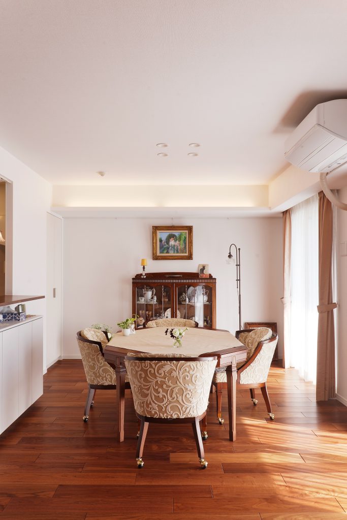 お嬢様ご家族が暮らすマンションの一室を中古購入、当初は娘家族の近くに住むことが最重要ポイントで、設備の劣化を改善して住めればいいとお考えでした。お話を進めていくと、アンティーク家具や洋服を集めるのが趣味だが、今の家で活かしきれていない現状、またそれと同時に好きなものへのこだわりや、身の回りのものを大切にされているお人柄を感じました。