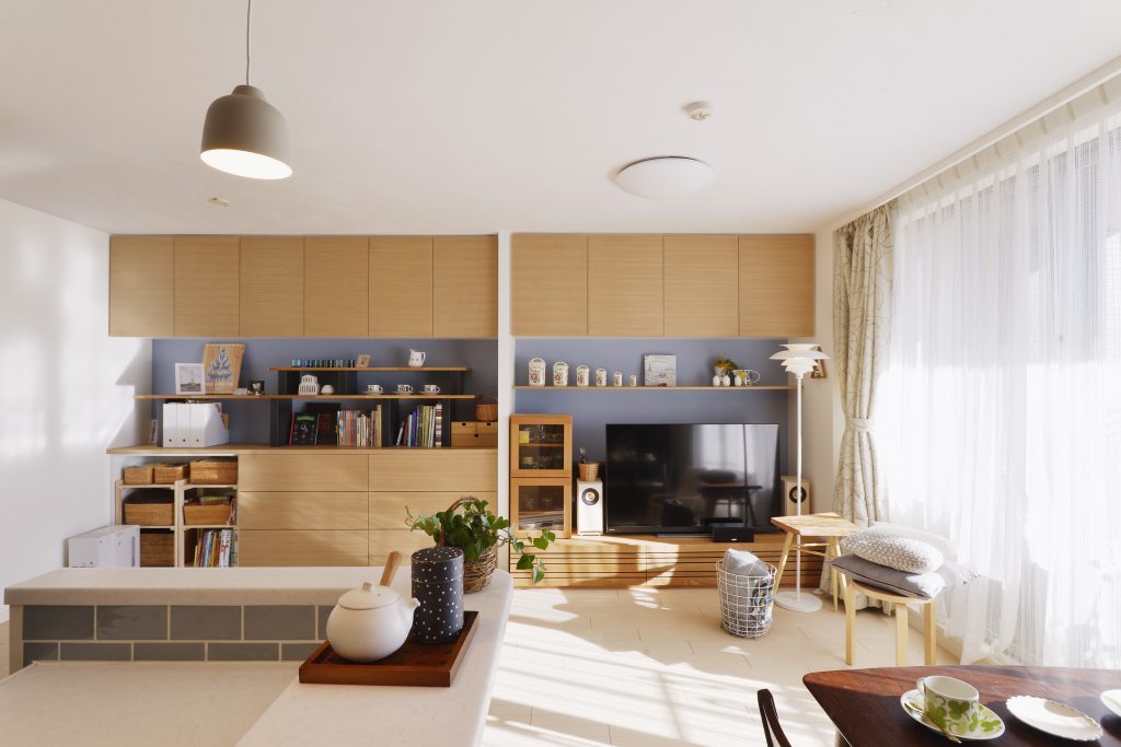 海外で買いそろえた食器を入れる場所や、新しく増える家族のためにも、収納を充実させたかったので幅5メートルの壁面収納をご要望でした。