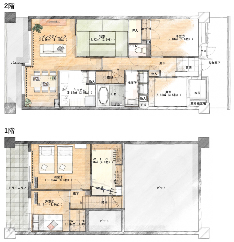 また、水廻りは基本一緒ですが、洗濯機だけは2台置きたいというこだわりを持っていらっしゃいました。
