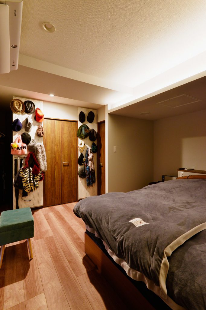 ・帽子等を沢山お持ちの印象だったのでWICの入り口壁面に有孔ボードを提案したところ、非常に良かったとのこと。もっと広い範囲でお願いしても良かったかも、と撮影時に仰っていただきました。