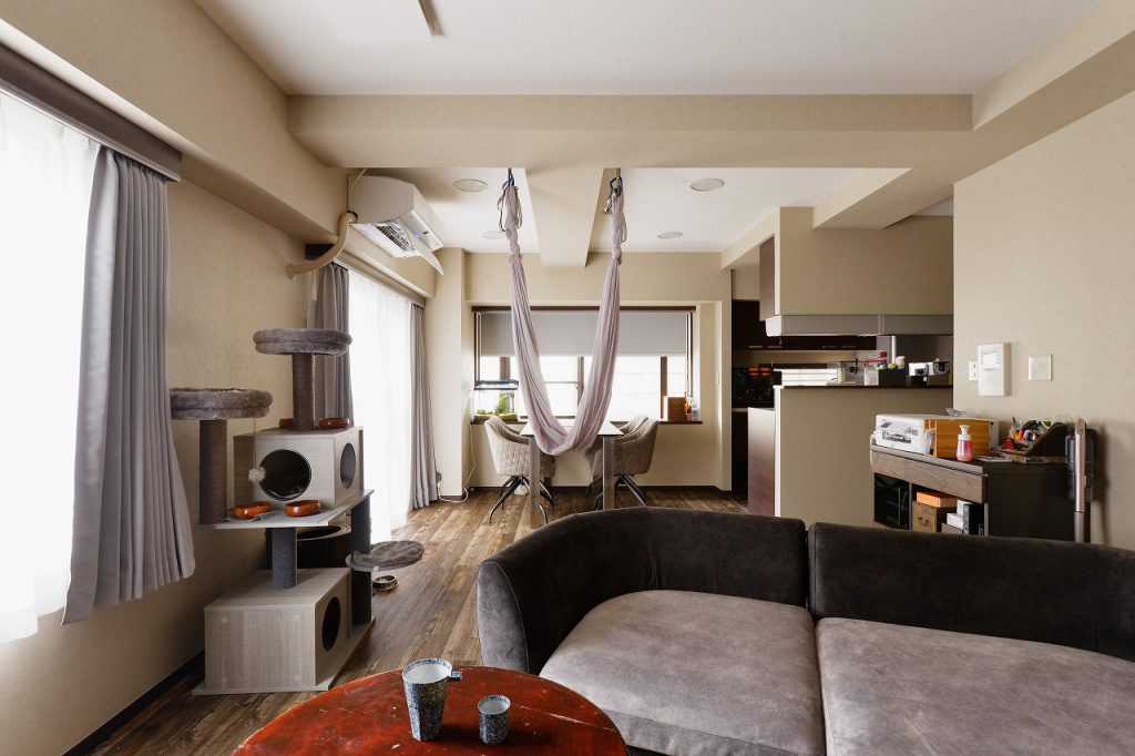 2匹のワンちゃんと1匹のネコちゃんがいるため、掃除しやすい床を希望されていました。