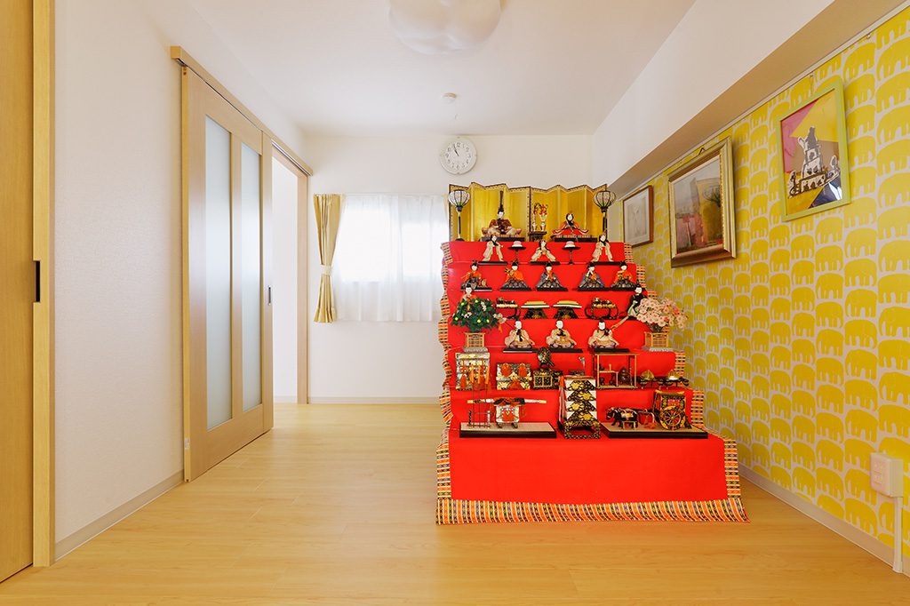 フリ-スペ-スには好きな絵も飾れるし、娘の七五三の時に母が作ってくれた木目込みの7段飾りのお雛様を飾る場所が出来てすごくうれしいです。