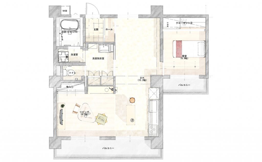 ・面積に対して部屋数が多く、玄関や脱衣所が狭いので、部屋数を減らして広くしたい