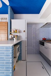 無難ではなくガラっと雰囲気を変えたいと、鮮やかな青の空間にこだわりました。限られたダイニングキッチンスペースやお仕事スペースを、どのように区切り、居心地よく、動線や収納を解決していくか、奥様とたくさんお話させて頂きました!区切ることで狭く感じてしまうのを心配されていたので、キッチンとダイニング、お仕事スペース、娘さんの勉強スぺースの空間は、広く感じながらも収納や作業がまとまるよう、ゆるやかな区切りを意識しました。また、解体と発生材の処分は、解体業のお仕事をされているご主人様が担当して下さいました!