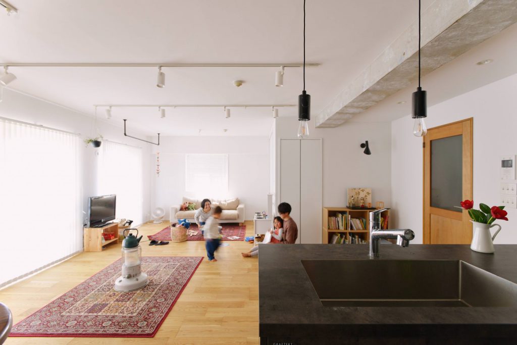 子どもたちの寝室のためリビングにパーテーションをつくることも考えましたが、今回予算オーバーということと子どももまだ小さいので、将来的に部屋を作れるような設計にしておくに留めました。結果的にみんながリビングで過ごすようになって、楽しくコミュニケーションが取れてます。