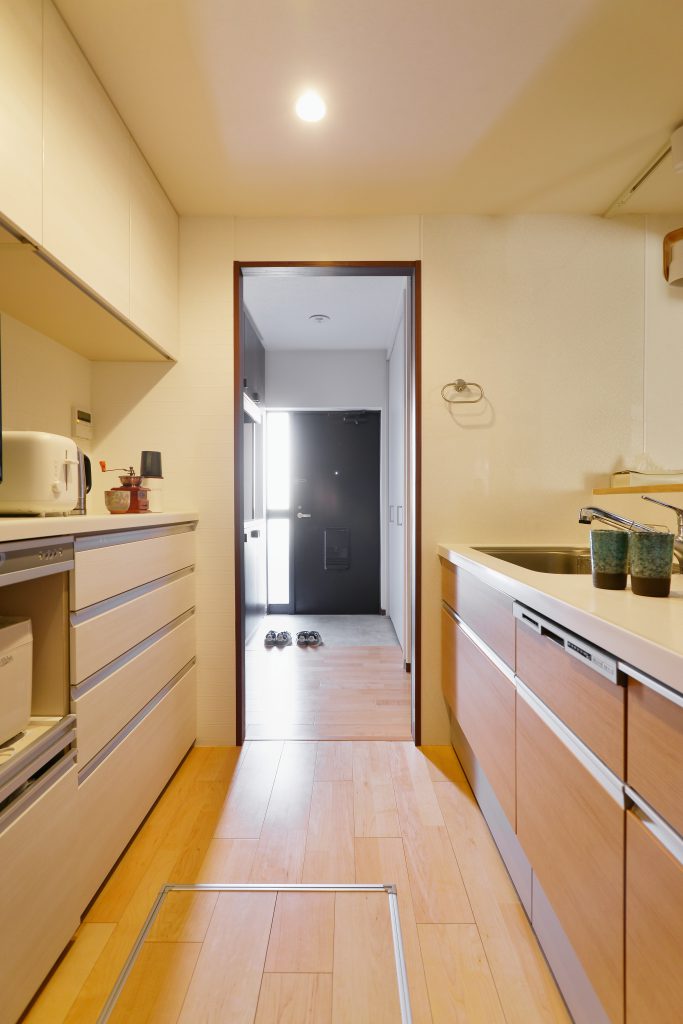 キッチンの形を変えた対面キッチンプランをいくつかご提案しましたが、部屋数を今のまま残したいというご要望とI型のキッチンで動線も重視したこちらのプランをご採用頂きました。