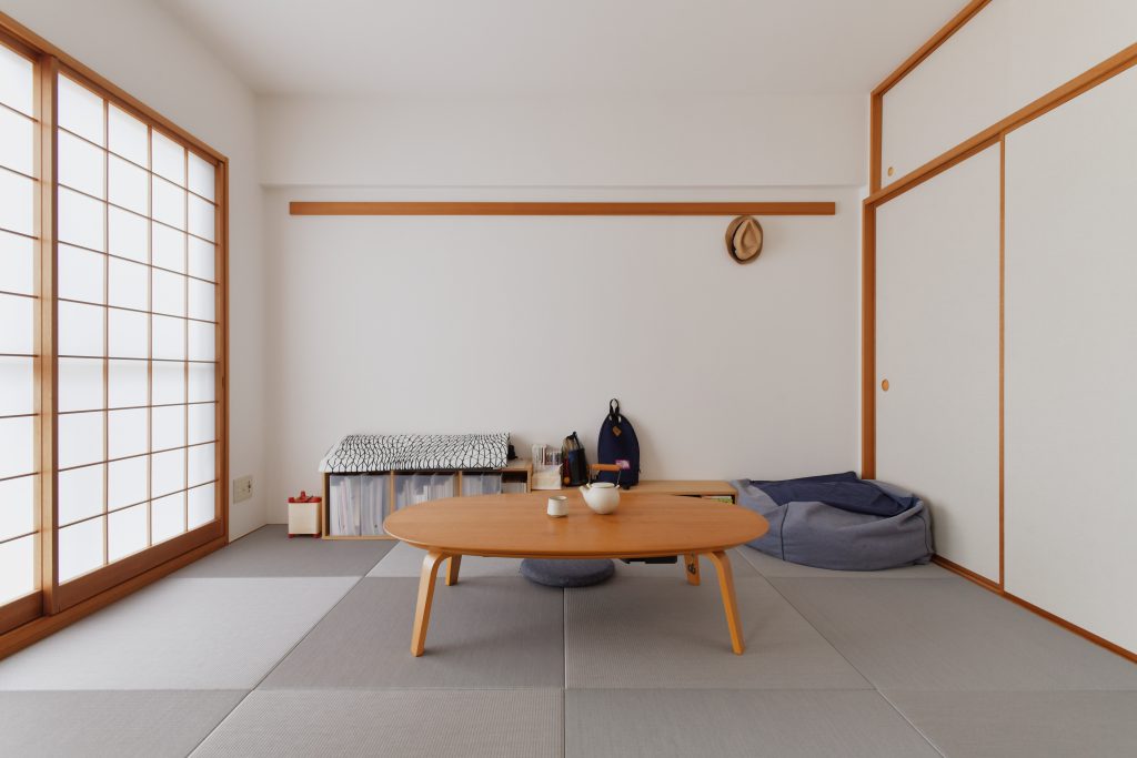 デザイン面:洋室のインテリアにも馴染む縁なしのカラー畳を採用しました