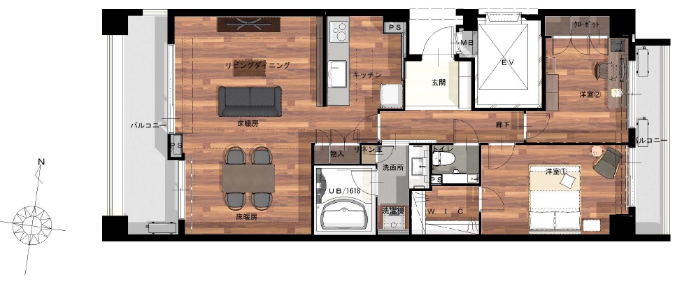 トイレ、洗面、リビング、キッチン、ダイニング、浴室、寝室、廊下