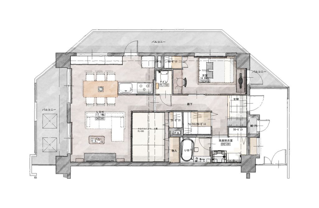 お客様とプランを話し合っていく中で、一番重視していたことは、無駄な空間を無くし広々と使えるように、ということでした。