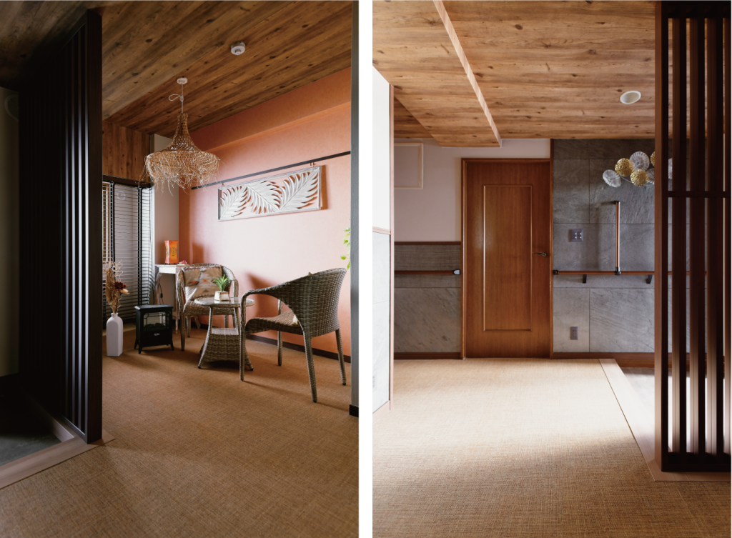 驚いたのは、車いすの主人が、手すりや格子をつかみやすく動きやすい高さで取りつけたことで歩くことができるようになったこと。今までの生活では考えられませんでした。手すりなどの機能性もありながら、内装はアジアンリゾートのような空間へ一新したのも嬉しくて、家具をそろえるのが楽しくなりました。